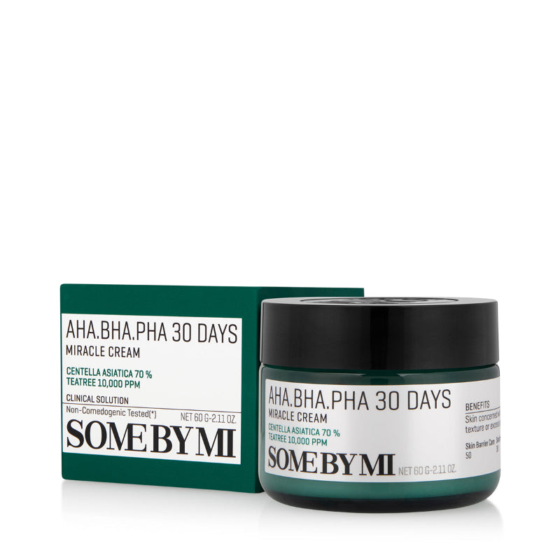 Le Some By Mi AHA-BHA-PHA 30 Days Miracle Cream – Une crème qui fait tout : hydrate, exfolie et améliore la texture de la peau. Grâce à ses ingrédients et ses exfoliants doux, elle réduit les imperfections pour une peau plus lisse et éclatante en seulement 30 jours.